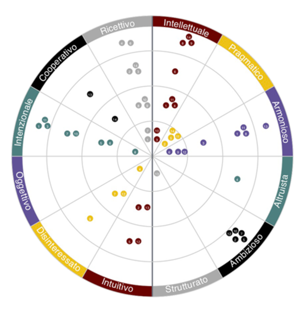 La ruota motivazionale del team, costruita a partire dalle analisi individuali, consente di valutare il livello di sintonia e l’allineamento con la cultura aziendale. È particolarmente utile nelle attività di team coaching e formazione.